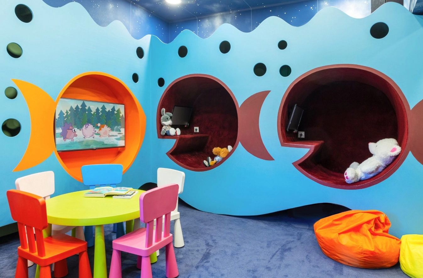 Детский клуб Fish Point Family Resort предоставляет пространство для активного и творческого досуга юных гостей под присмотром профессиональной няни. Дети могут лепить, мастерить, играть и выбирать занятия по интересам, вне зависимости от возраста. На берегу водоёма расположена открытая игровая площадка для отдыха на свежем воздухе, а на специально оборудованном детском прудике ребята могут попробовать себя в рыбалке под наблюдением инструктора. Дети до трёх лет допускаются в детскую комнату только в сопровождении взрослого.