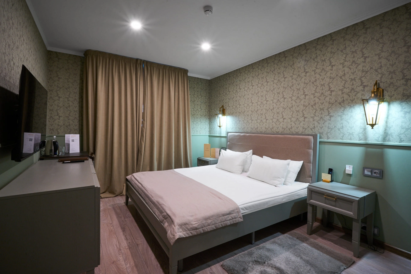 Номер категории Standard расположен в гостевом комплексе и рассчитан на размещение двух гостей, предлагая практичное решение для романтического отдыха или деловой поездки. Оснащение включает телевизор с плоским экраном и кабельными каналами, мини-бар, а также собственную ванную комнату с душем, феном и косметическими принадлежностями.